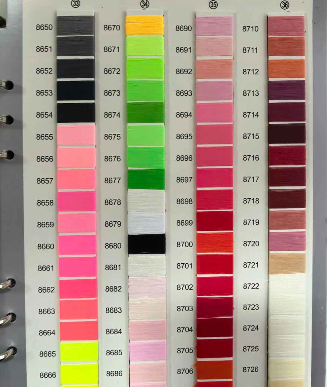 We provide a complete color solution covering both classic and trend-leading colors. Our polyester threads and matte threads are available in three specifications: 50D/2, 75D/2, and 120D/2. We offer thousands of colors with rich, consistent shades and stable batch quality. We are committed to being your most reliable long-term partner in color design and production.