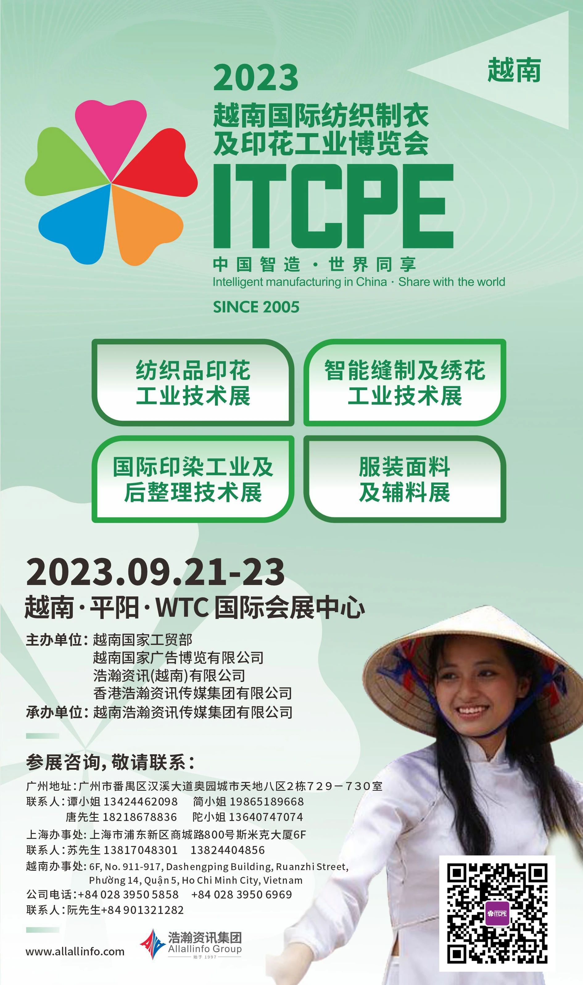此次越南纺织制衣及印花工业博览会即将于2023年9月21—23日在越南平阳WTC国际会展中心召开,届时将有更多惊喜内容等你来~
