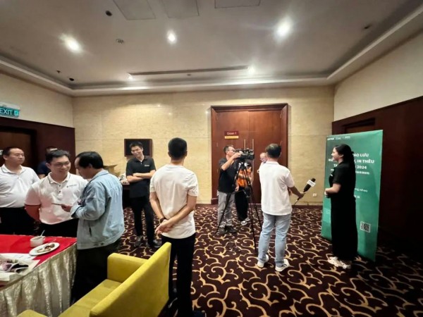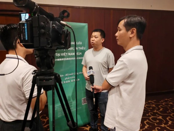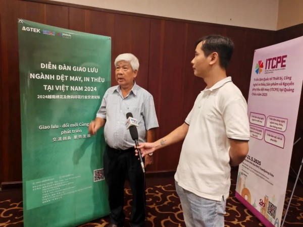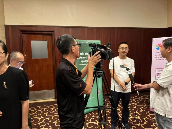 在茶歇间隙,数位当地行业协会的领军人物及与会嘉宾还接受了越南工业技术电视台的采访,并为即将于11月27日至29日盛大举行的越南纺博会进行了热烈而全面的推介。