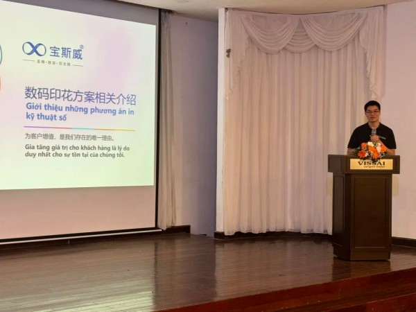 论坛核心议程紧凑而丰富,涵盖了行业发展的多个关键领域。浙江越隆缝制设备有限公司(越美绣花机)庞金刚先生、广州山木新材料有限公司向纯仪女士等行业领军企业纷纷登台演讲,分享了最新的绣花与印花墨水技术解决方案,展示了企业在技术创新方面的最新成果。越南正威印绣工业技术有限公司(广东三信特种绣花机越南分公司)章伟先生与景望数码贸易有限公司田育标先生则深入探讨了绣花与数码印花技术的最新进展,为参会者带来了前沿的行业洞察。