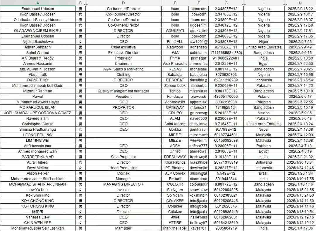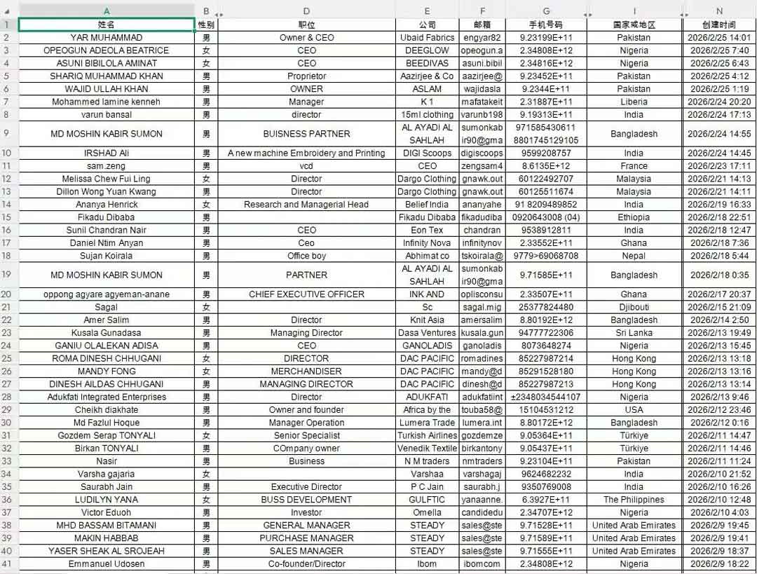 *以上为部分海外观众登记截图,由ITCPE纺博会海外推广部提供