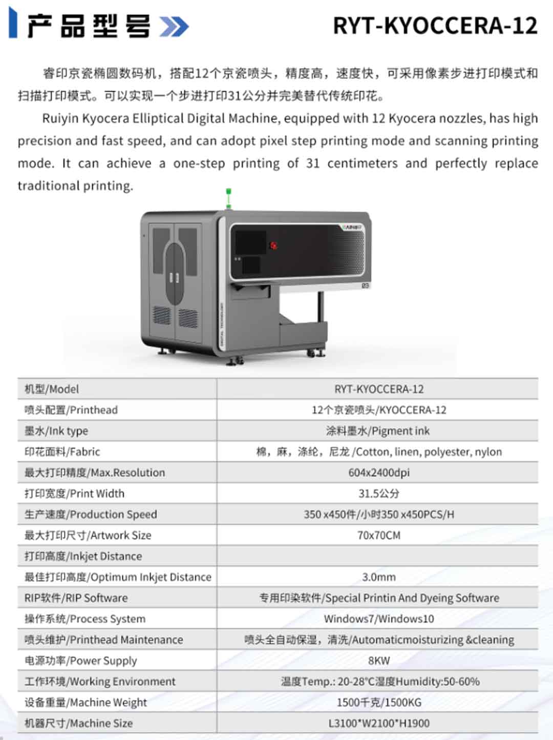 产能:每小时80件无需制版、一件起印、数码直喷、柔软透气。双工位和四工位可选。