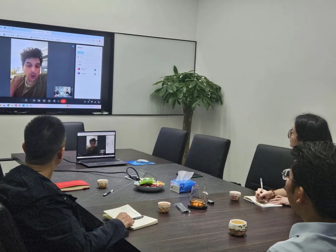 图为巴西纺织权威媒体及协会代表与浩瀚资讯团队在广州纺博会筹备期间进行深度洽谈