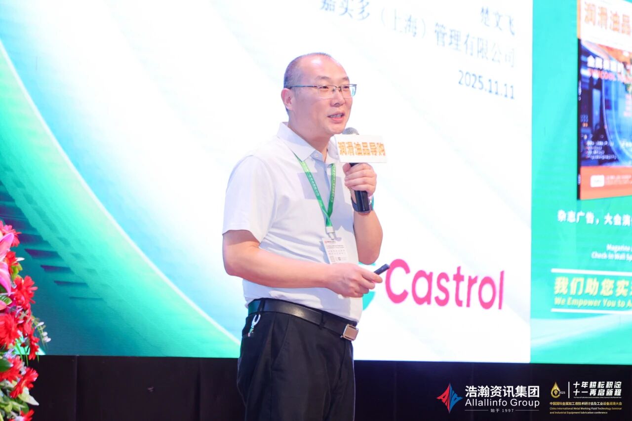 行业资深专家、高级工程师张晨辉先生作了题为《2025中国金属加工润滑剂的市场现状与发展前景展望》的报告分享,分析了2025年中国金属加工油液的市场现状,并探讨了对中国金属加工油液市场发展前景与思考。