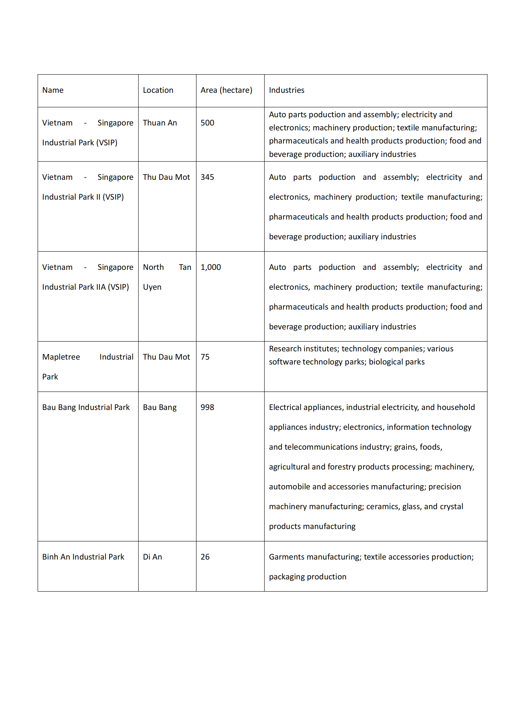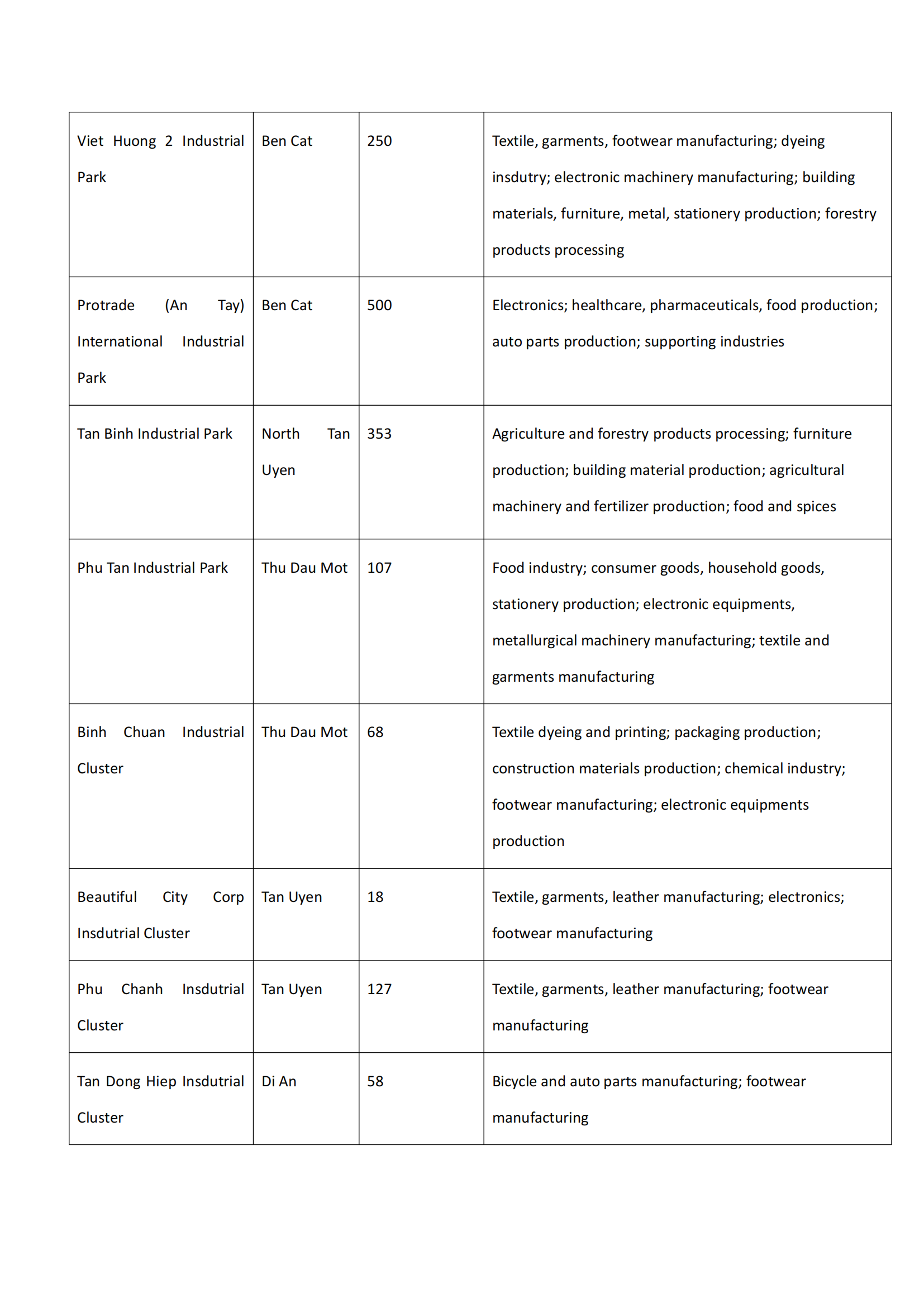 Binh Duong province is located in the southeastern part of Vietnam and sits at the heart of the southern economic corridor, making it a manufacturing hub of Vietnam. Currently, it boasts 48 industrial clusters and industrial parks, with plans for the development of an additional 34 industrial parks.