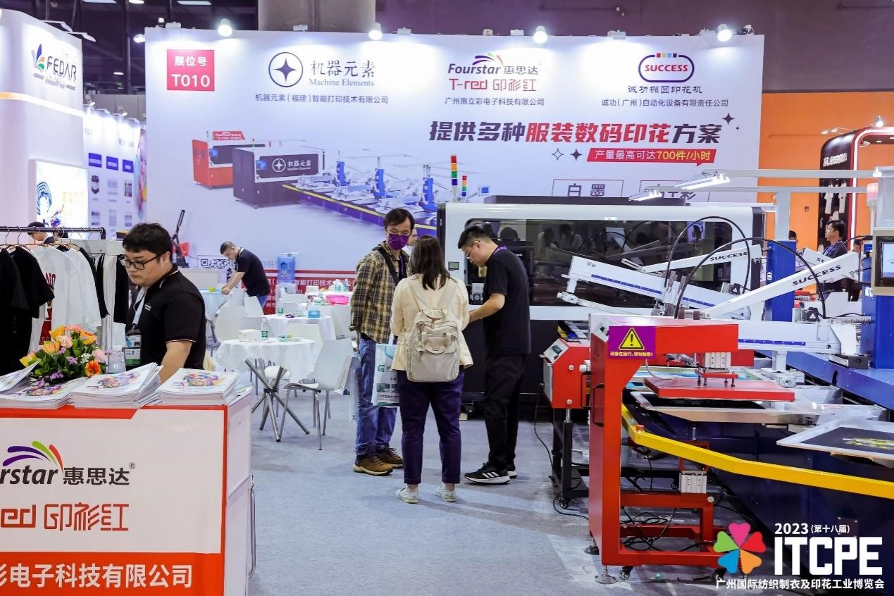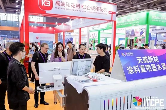 展会现场我们可以看到有ORIC、Grando、KEUNDO、PENGDA、PO-TRY、FLORA、CNDING、Zhenfeng、Success Automation、Fourstar、Machine Elements、YiliJet、Pros-view、RATEX、POMAKER、DAHAO、SINSIM、CBL、Bihong、Yuanyin Digital、MAYA、CH-JIA、YUEMEI、RICOMA、Yuchen、MyColor、BOYAN、ZHOUSURNAME、Dongguan BEST、LNXWO、XINFYING、Zhongwang、Pinyin、Aomya、Chuanghui、ZHAOSHAN、M100、HDHT、kornit-print、TIANWEI XINCAI、星豪、INKBANK、KUYIN、JIUH LIH、Jiangchuan、四合达、诺为、HY、YIXING TIANLI、KEDO SILICON、print-pretty、超伦、创可、Shenzhen Boyan K3、Kalos、XMAYPRINT、JYIE、Color Spring、Junao、财印通、杰创、Lamborink、SAN GONG、HONGSAM、XING QI LASER、SEENSUN、Dongguan Gaoshang Machinery、COLORMADE、HOOSUN、SNS、KASULASER、91TUKU、Yuqiaofu、多田、Golden XT、KAIOU、Hongzhongmachinery、Fanghua Digital、INKTEC、天力、太阳花、瑞翌、大远、锦晖、老墨坊、绣之源、新善联、五洲纸业、双信、福建键升、Dongguan Zhongtian、New Image Printing、极光电子、联星泰、东升、野人数码、南通佳境、盛发、拓雅、俊业植绒、富蕾、恳策尔、浈颖、绣之源、海宏智能、泉州亚兴、佛山鑫斌、东莞鼎骏、涂王、台恩达、超预、盛长节能、金龙、虹彩、银申、柏川、锦旺、恒安反光、金研、楠溪江、星之光、博琳、Hummberg、天晟、澳宇、Rong xuan creative factory、东方骏、双丰、华彩、天马、佳南热熔胶、泰昌、盈聚、卓科、财盛、远猷、晨铭、朵尼数码、千姿潮品、赛伯利、创研、源盛、金宝印花、天鹰纸业、锦龙、绿兴、鸥朋、太仓扬帆、亚丽、上海锋创、虎门天厉、星焱、森华橡塑、俊豪机械、德伟科技、COLOR WING、惠创鑫、诚纳化工、欧联光学、建耀印花、龟牌电子、上谷工业设计、明钿、喜威、豫宏、恒金鼎、阿夫特、耐信、合盛元、盛顺机械、倍尔斯粤尚、艺彩、衣图纳、宏大盛昌、头彩500+ enterprises on textile printing、digital printing、embroridery 、apparel fabrics & accessories have participated in the ITCPE 2023.