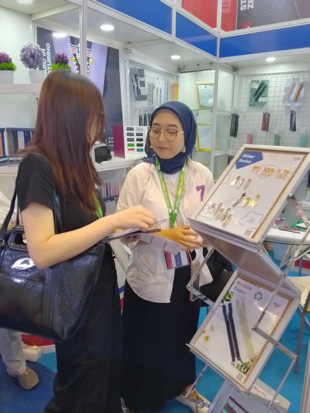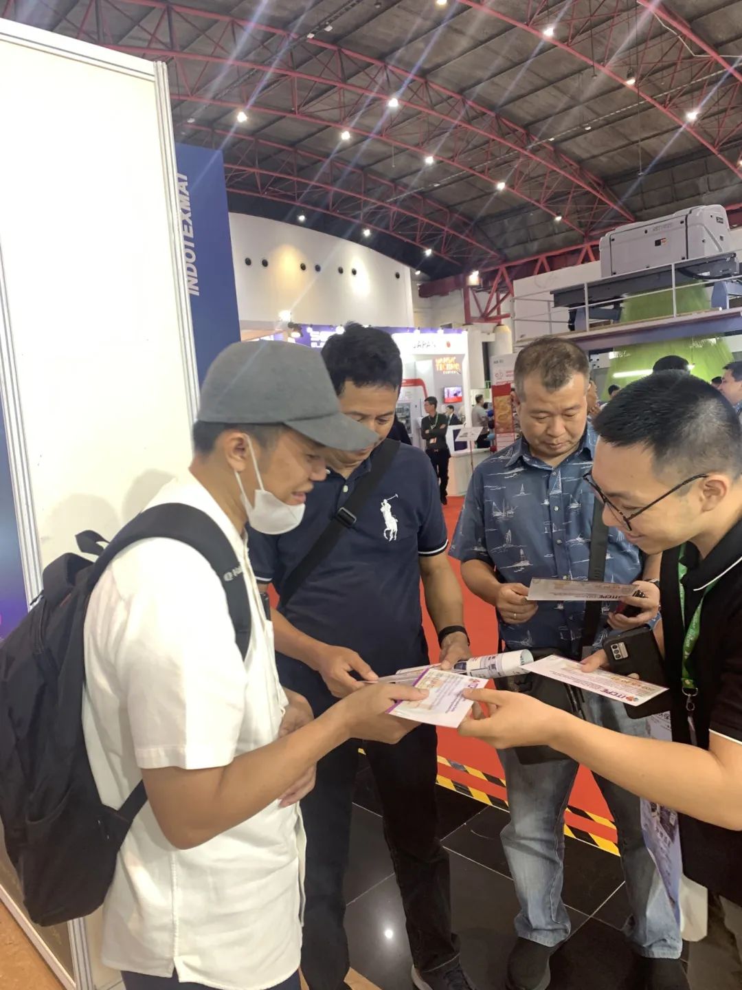 在雅加达纺织机械展览会上,在与印尼纺织制衣行业的人士沟通交流中,我们详细介绍了广州纺博会展示的内容,大家都对广州纺博会表示期待,纷纷表达了前往意向并留下了相关联系方式。通过交流,我们也深刻感受到,无论在国内还是国际,纺织制衣及印花绣花行业都正经历着前所未有的变革与机遇。广州纺博会作为中国华南地区极具影响力的纺织制衣及印花绣花行业盛会,始终致力于推动产业的创新与进步,为全国乃至全球纺织制衣及印花绣花行业搭建一个交流与合作的平台。