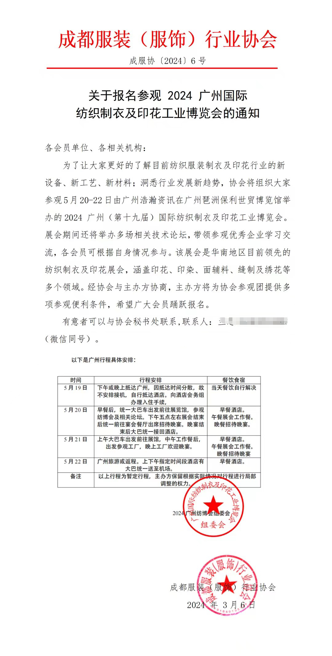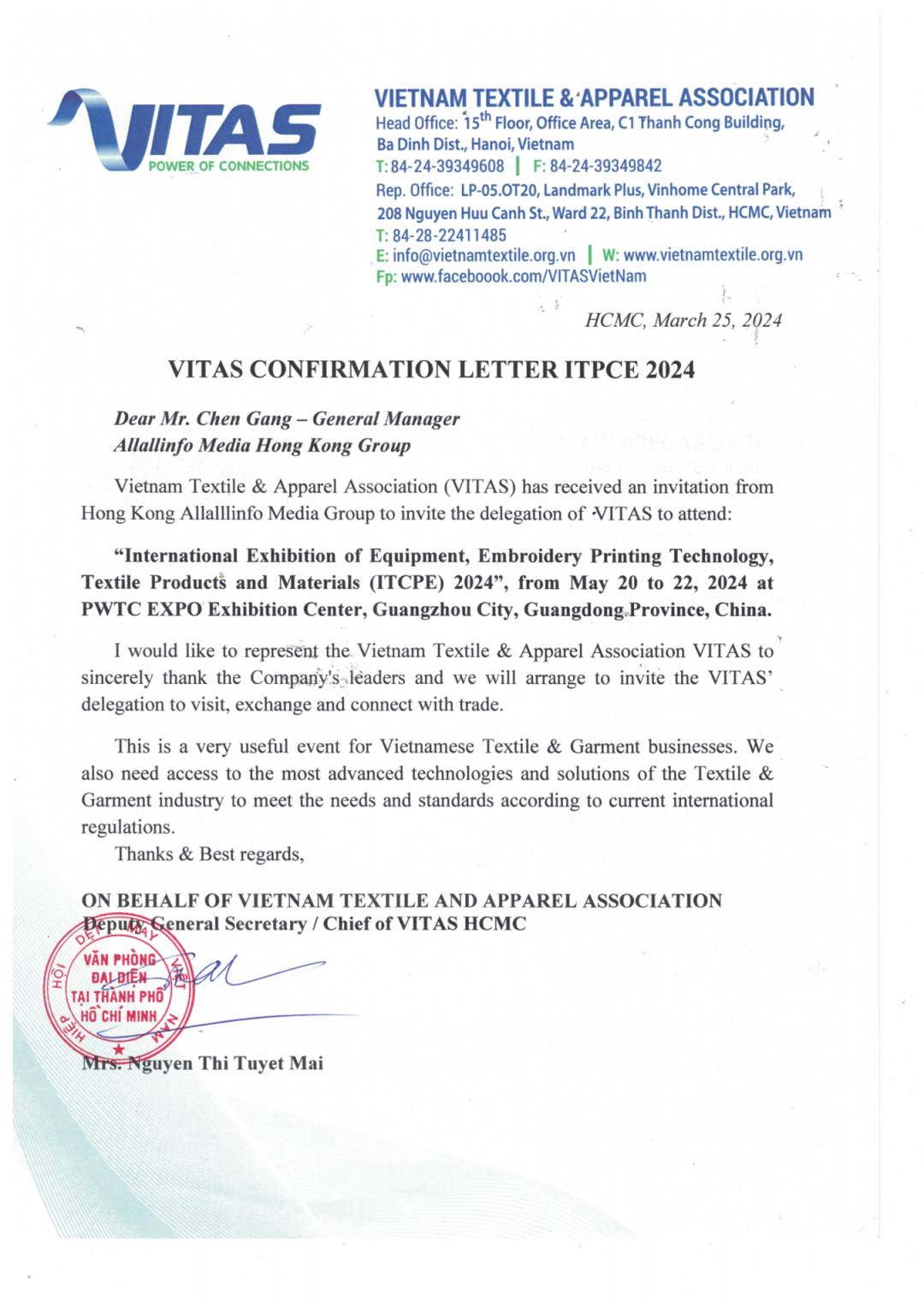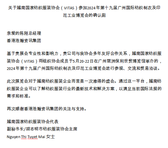 越南国家纺织服装协会(VITAS)的组团公函: