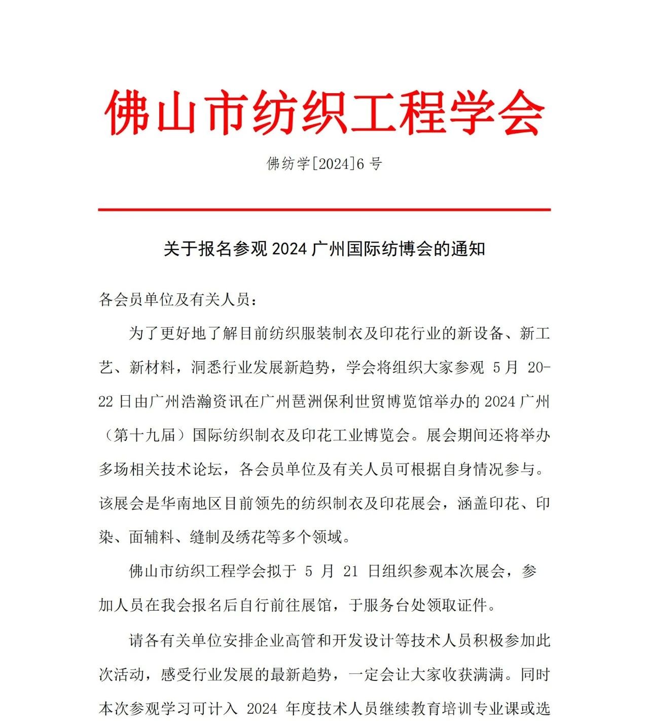 继上一批国内外各纺织制衣印花绣花行业协会发文将组团来参观520广州纺博会的协会名单发布后,组委会又陆续收到不少同样将组团来参观广州纺博会的各协会组织的组团文件。第二批也是国内外专业纺织制衣及印花绣花缝制行业的各专业组织,他们会员专业度高,数量多,是行业的中坚力量。