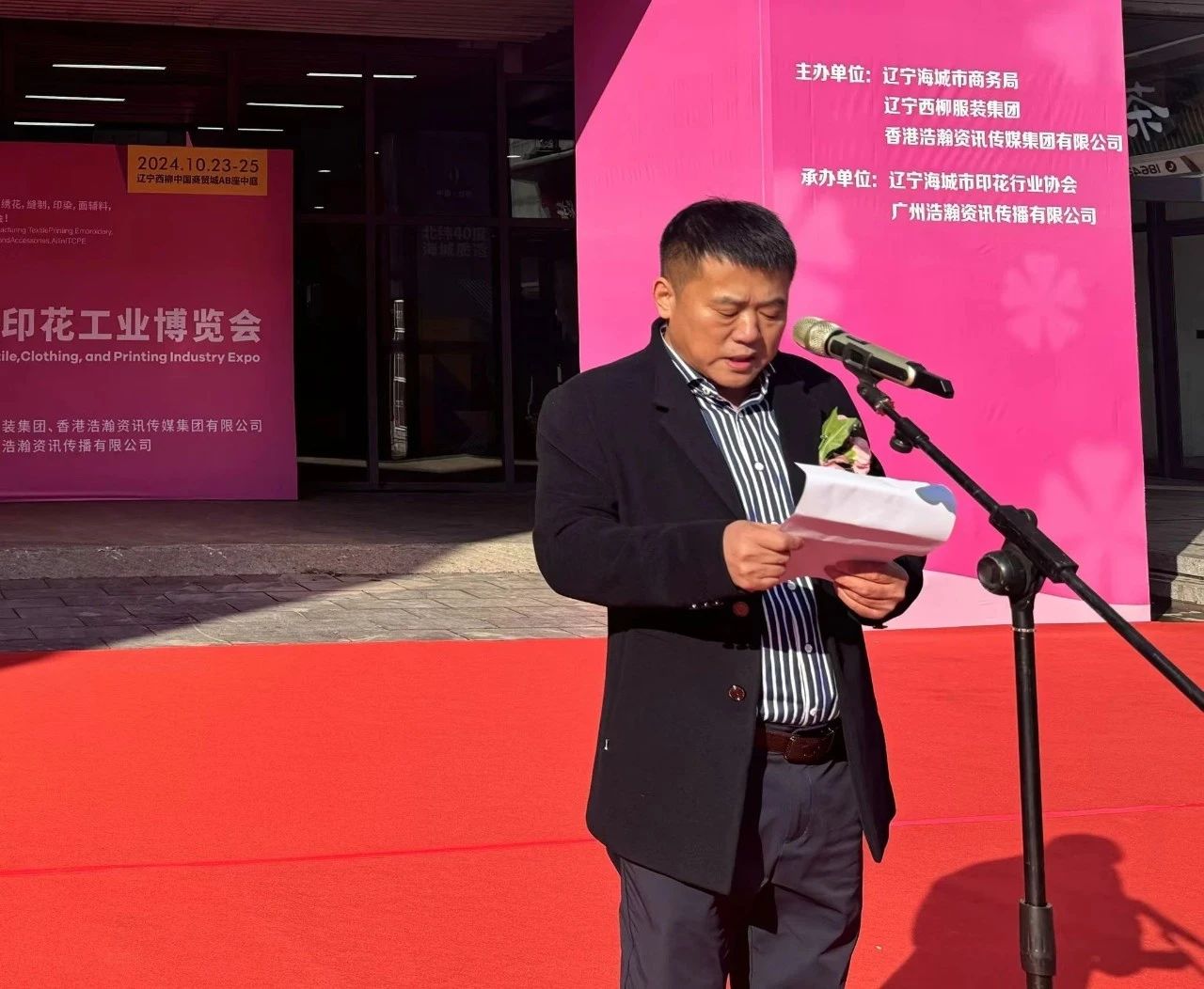 10月23日,“2024中国(东北)国际纺织制衣及印花工业博览会”在海城市西柳镇中国服装商贸城盛大开幕。此次纺博会由辽宁西柳服装集团、香港浩瀚资讯传媒集团有限公司以及海城市印花行业协会共同主办,得到了海城市总工会、海城市商务局、西柳镇人民政府以及海城市西柳纺织服装协会的大力支持。