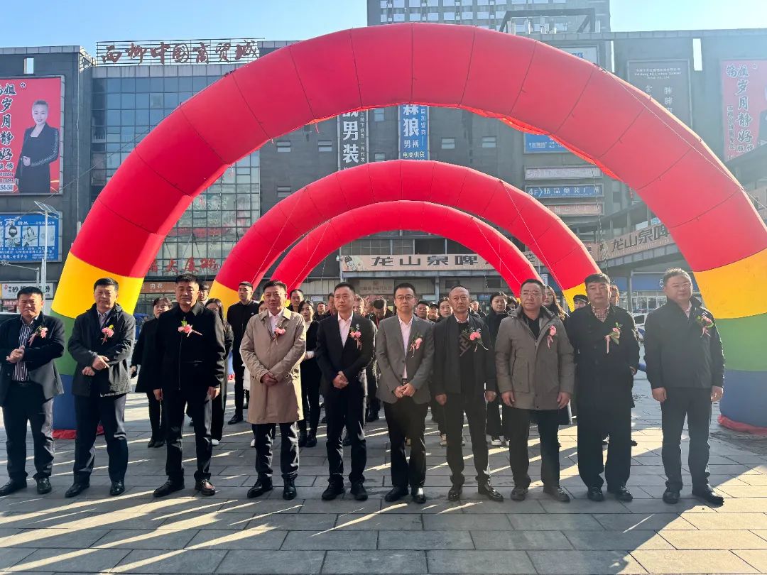 尹玉权书记(左一)、赵汝峰会长(左二)、陈刚总经理(左三)、董福罡副镇长(左四)、高光楠主席(左五)、吕刚局长(右四)、吴宝琦会长(右三)、曲晨峰总经理(右二)、徐军副会长(右一)