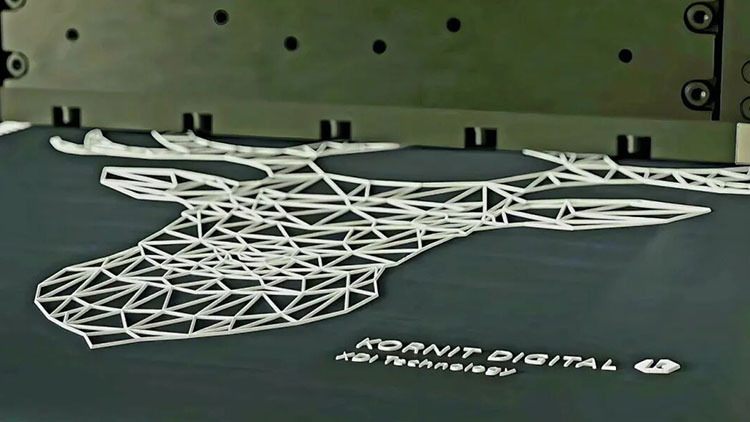 论坛上,康丽数码隆重推出了按需生产的新标准——康丽Atlas MAX POLY成衣打印系统。该系统通过MAX技术增强了加工工艺,不仅精准控制颜色,还为颜色、形式和结构提供绝对的数码控制。XDi应用通过自动化算法实现了2D至3D无缝渲染,开启了3D立体印花新纪元。