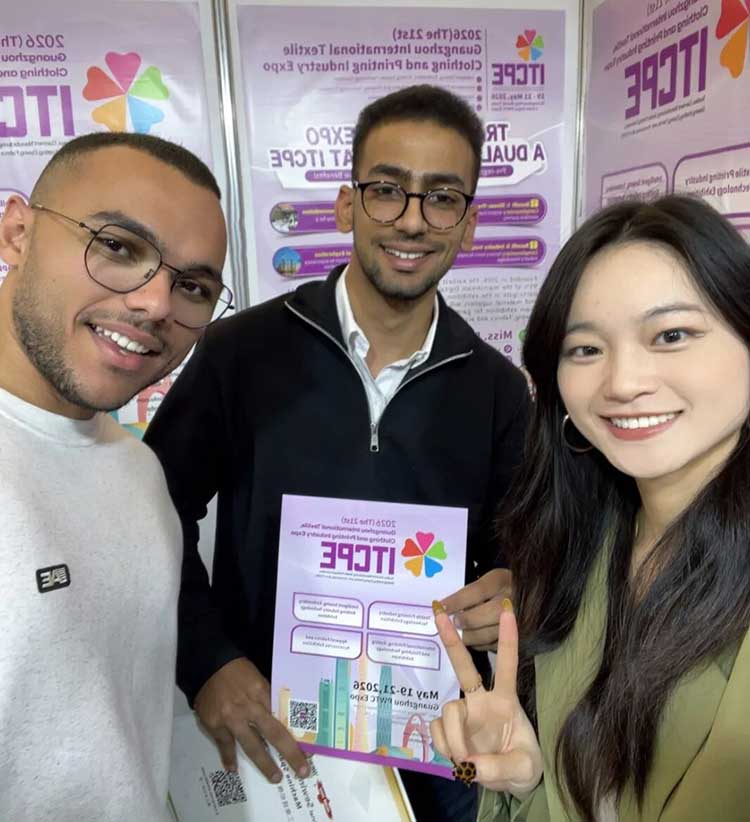 近日,浩瀚资讯ITCPE纺博会团队亮相埃及开罗国际会议中心,参加埃及国际缝制及纺织展览会(Egy Stitch & Tex 2025),同时以“全球邀约·链接未来”为主题,面向东南亚、欧洲、北美及非洲等重点市场发起行业邀约,诚邀全球纺织制衣业人士共赴2026年5月19-21日在广州琶洲保利世贸博览馆举办的ITCPE 2026(第二十一届)广州国际纺织制衣及印花工业博览会(下文简称“ITCPE广州纺博会”)。