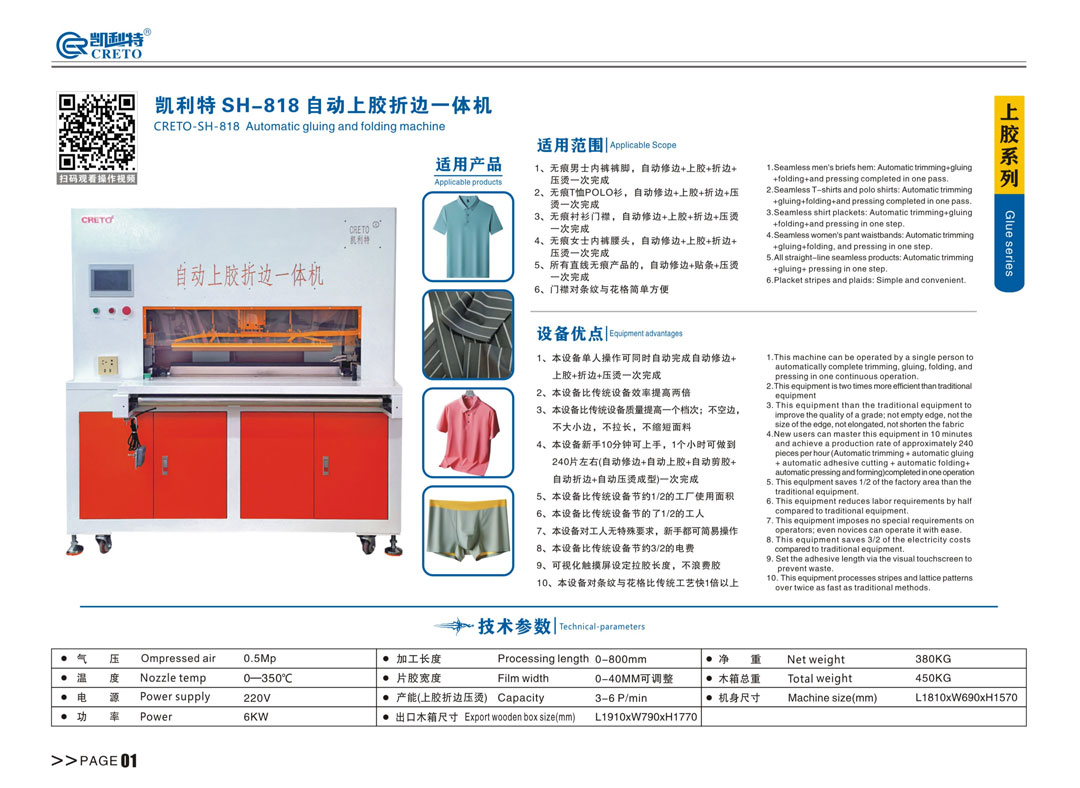 东莞市凯利特科技有限公司,拥有一支在无痕贴合、上胶等贴合领域具备丰富实践经验的卓越技术团队。专注于贴合领域设备高端产品的研发与制造,致力于为服装、皮革、鞋等行业的缝纫工艺提供稳定高效的生产设备以及先进的整体解决方案。 公司主营上胶机、折边机、贴条机、拼贴机、包边机、超声波机、点胶机、刷胶机、超声波机和压烫机等一系列无痕设备。我们的设备成功远销至韩国、泰国、德国、美国、日本、马来西亚、越南、菲律宾、印度、巴基斯坦、印度尼西亚、加拿大等众多国家。我们为客户提供全方位的售后支持,包括设备的安装调试、培训指导、定期维护和及时的故障排除。 无论何时何地,只要客户有需求,我们的专业售后团队都会迅速响应,以确保客户的生产过程顺利进行,让客户无后顾之忧。 选择东莞市凯利特科技有限公司,就是选择专业、品质与信赖,世界看中国,中国凯利特! Dongguan Creto Technology Co., Ltd, has a seamless laminating, gluing and other laminating areas with a wealth of practical experience in the field of excellence in the technical team. Specializing in the field of laminating equipment, research and development and manufacturing of high-end products, is committed to the sewing process for the garment, leather, shoes and other industries to provide stable and efficient production equipment as well as advanced overall solutions. Our main business: a series of seamless equipment such as gluing machine, folding machine, sticking machine, collage machine, hemming machine, ultrasonic machine, dispensing machine, brushing machine, ultrasonic machine and pressing machine. Our equipment has been successfully exported to many countries such as Korea, Thailand, Germany, USA, Japan, Malaysia, Vietnam, Philippines, India, Pakistan, Indonesia, Canada and so on. We provide customers with a full range of after-sales support, including equipment installation and commissioning, training and guidance, regular maintenance and timely troubleshooting. No matter when and where, as long as the customer has the need, our professional after-sales team will respond quickly to ensure that the customer's production process runs smoothly, so that customers have no worries. Choosing Dongguan Creto Technology Co., Ltd. is to choose professionalism, quality and trust, the world chooses China, China chooses Creto!