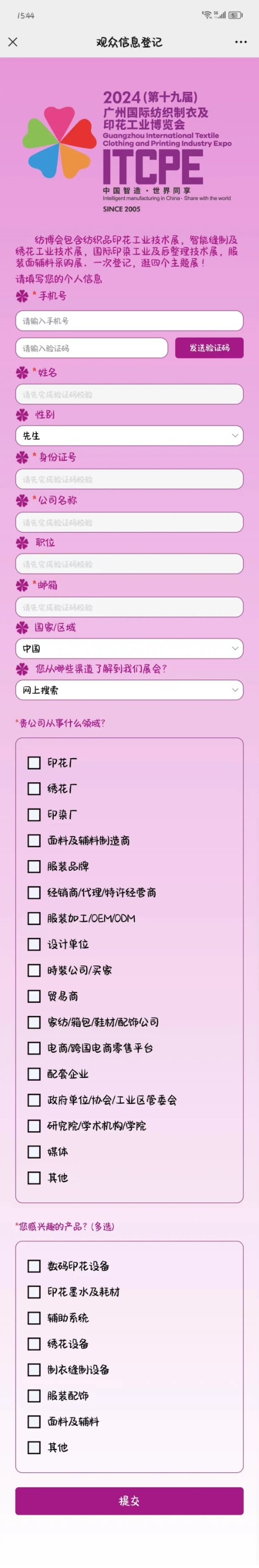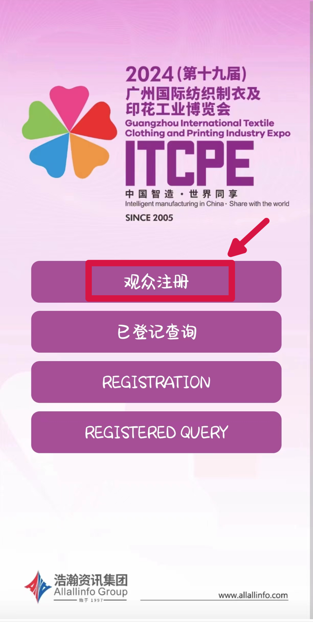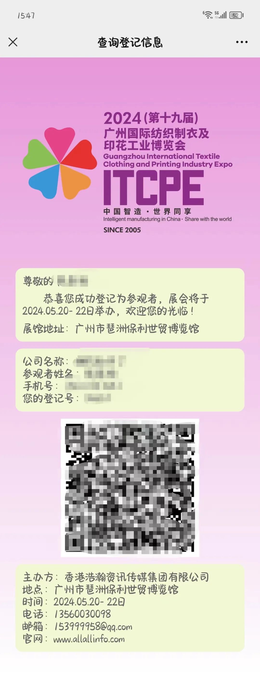 本届广州国际纺织制衣及印花工业博览会与上一届一样全面采取“实名预约制”,请您务必于观展前完成“观众预登记。如已登记,请保留二维码,并携本人有效身份证进入展馆。