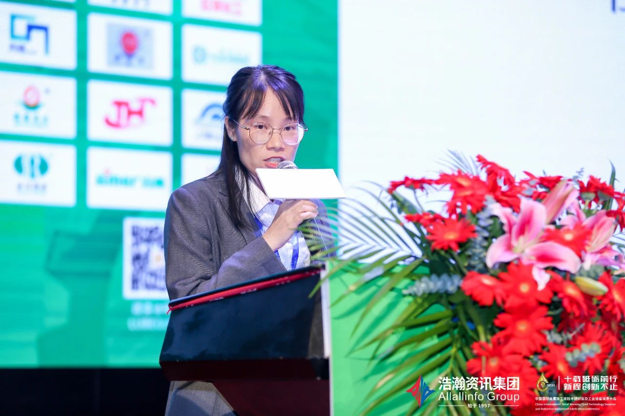 广东铂索新材料科技有限公司技术部主任梁银簪女士作了题为《金属加工液润滑性能测试方法(攻丝扭矩法)》的报告,详细介绍了攻丝扭矩法中的测试过程、数据分析及结论,为金属加工液行业提供有益的参考。