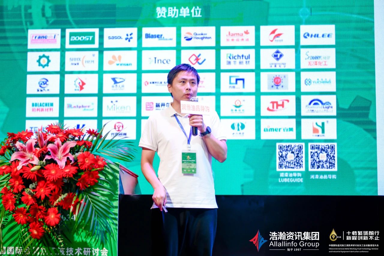 上海迈肯生物科技有限公司技术总监侯玉波先生作了题为《金属加工液微生物耐药性研究及应对方案》的报告,从切削液微生物污染带来的危害来展示迈肯推出的金属加工液杀菌剂产品,并结合案例分享表示其能够为客户提供全面的微生物控制服务。