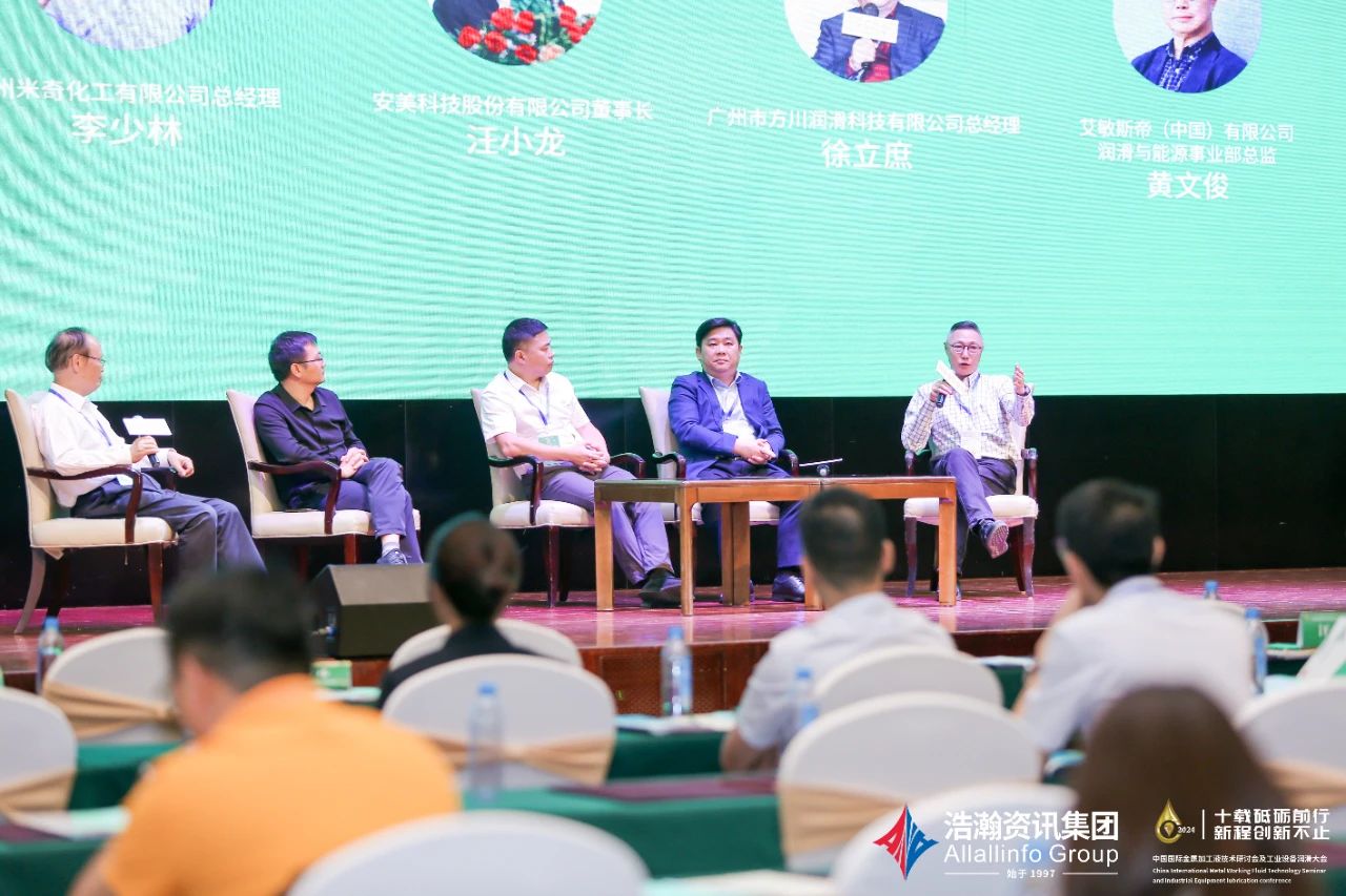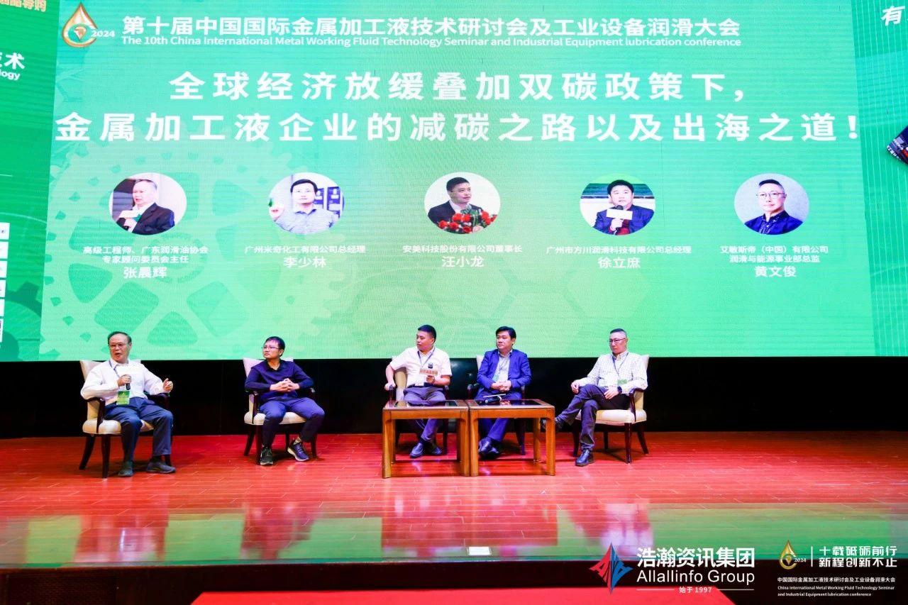主题报告环节结束后,本次大会特别邀请行业资深专家、高级工程师张晨辉老师;广州米奇化工有限公司总经理李少林先生;安美科技股份有限公司董事长汪小龙先生;广州市方川润滑科技有限公司总经理徐立庶先生;艾敏斯帝(中国)有限公司润滑与能源事业部总监黄文俊先生围绕“双碳战略目标下,能源结构转型升级,金属加工液企业的减碳之路和出海之道!”热点议题展开沙龙讨论。