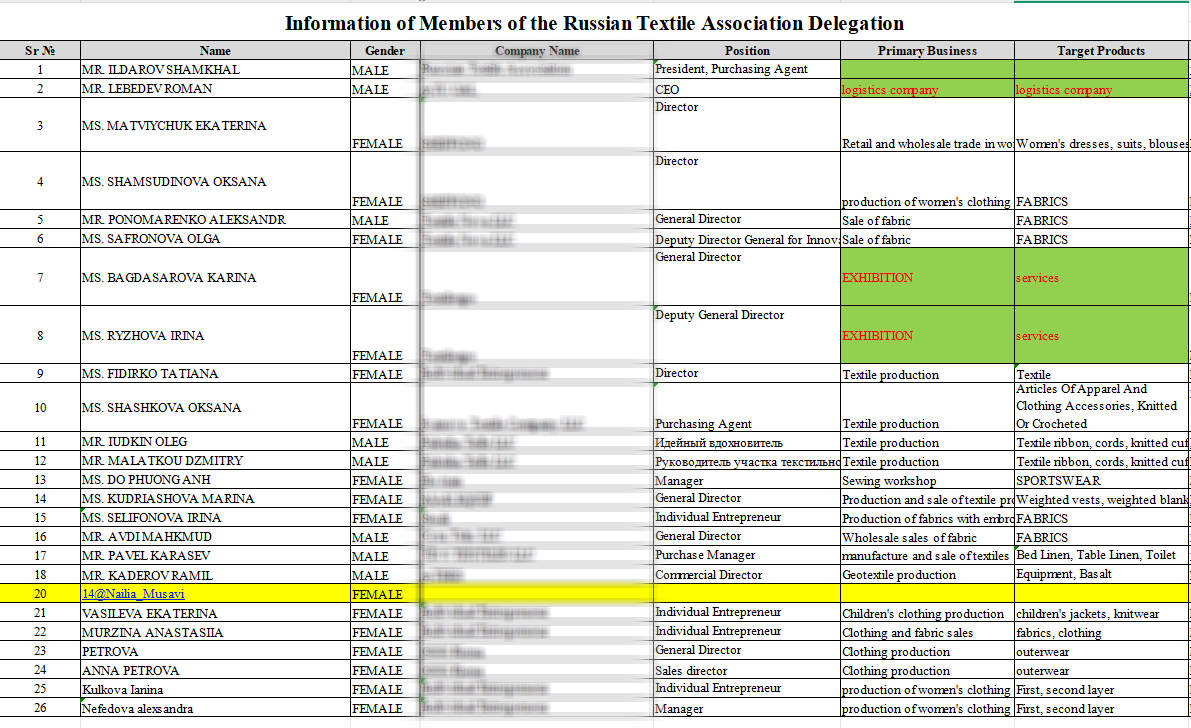 上图俄罗斯纺织制衣协会参观团首批确认赴会人员