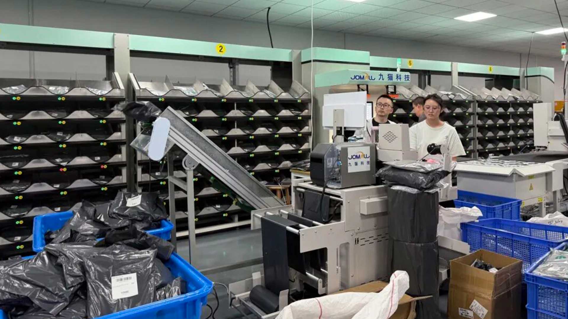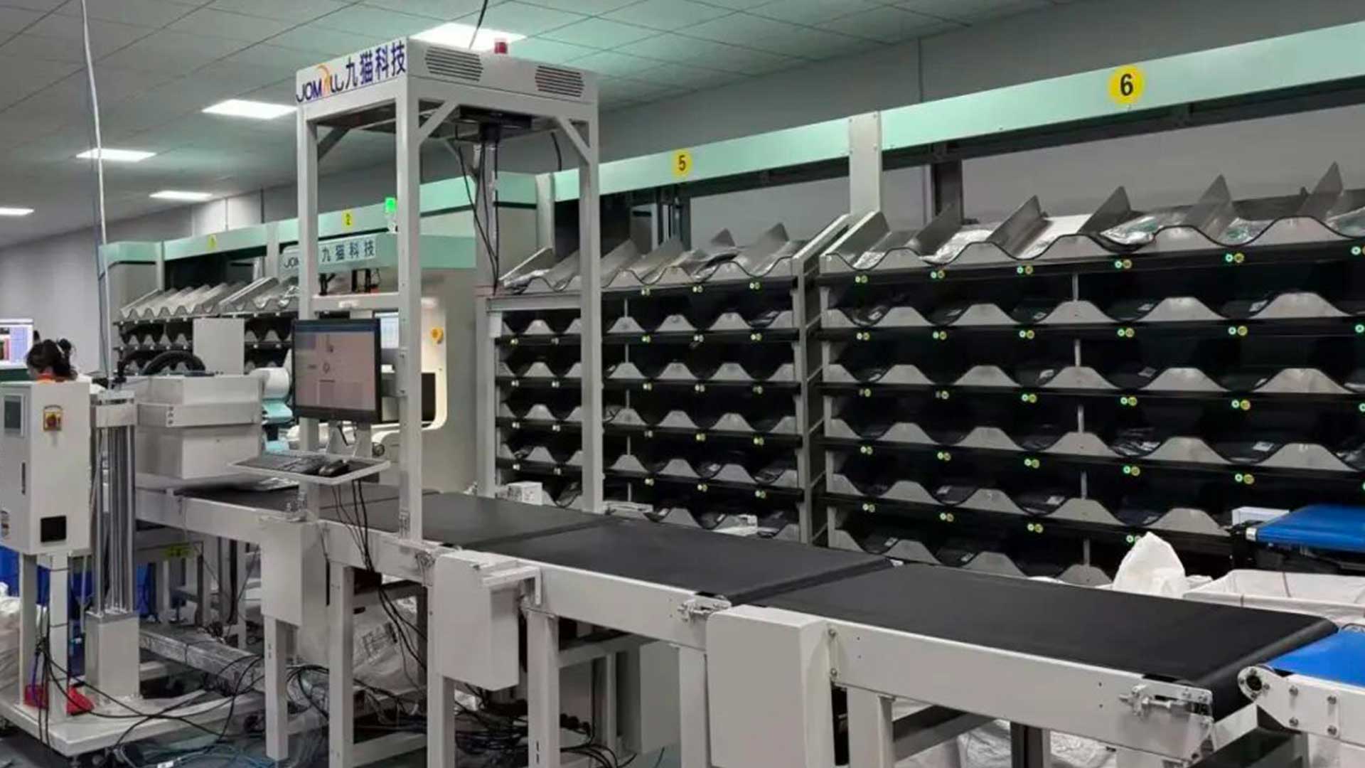 MIA透露,九猫美国工厂总计6万尺,坐落在加利福尼亚州工厂,配备了50台兄弟ProB直喷设备,单台机器可制作200面/天;依托九猫前端ERP系统以及九猫工厂端实现一图一码全流程运转;衔接全美尾程物流,优化跨境配送时效与成本,九猫工厂车间内还同步搭载自动化分拣系统,从折衣、打包、打标到分拣的全流程流水线均实现智能化操作,显著提升了订单处理的效率与准确性。